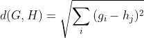 The spectral distance (Wilson & Zhu, 2008) between two adjacency G and H matrices is simply the Euclidean distance between their spectra (g) and (h). Also, one can use the Laplacian counterparts of the adjacency matrices. is computed using the following formula: