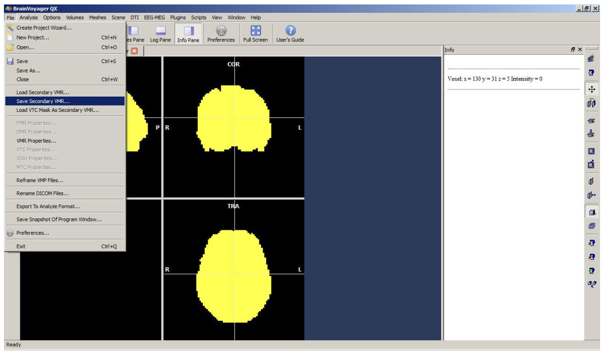 We load a previously created mask file as a secondary VMR (“File” menu).