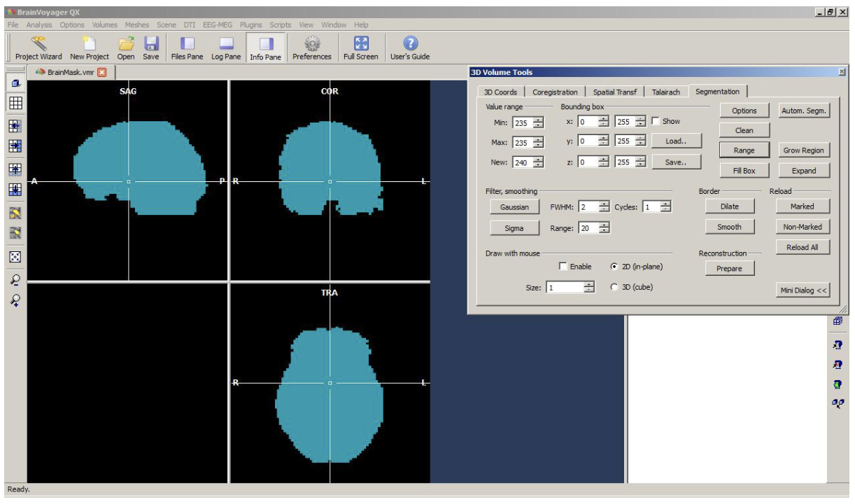 We save the file as “BrainMask.vmr”